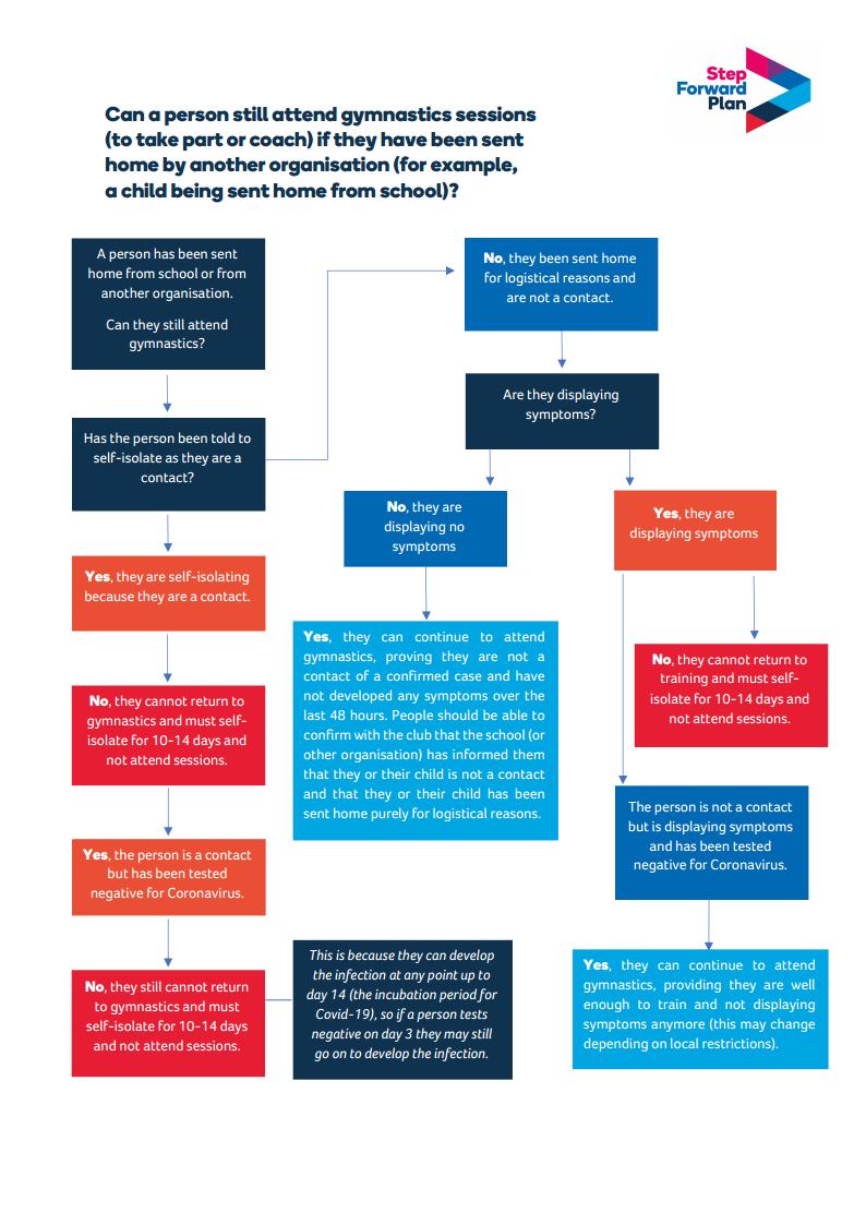 We know that things are very confusing at the moment. We hope that these flow charts will help you to decide who can and cannot attend gymnastics when you, your gymnast or someone in your family either shows symptoms, or sadly has been tested positive.